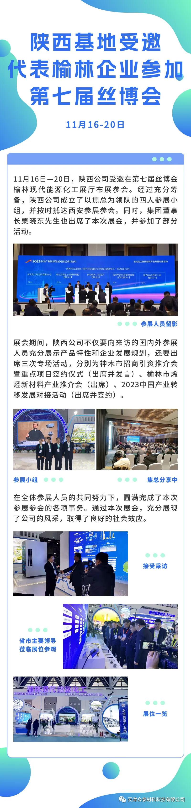 陜西公司受邀在第七屆絲博會(huì ),榆林現代能源化工展廳布展參會(huì )。經(jīng)過(guò)充分籌備,陜西公司成立了以焦總為領(lǐng)隊的四人參展小組,并按時(shí)抵西安參加展會(huì )。同時(shí),集團董事長(cháng)栗曉東先生也出席了本次展會(huì ),并參加了部分活動(dòng)。